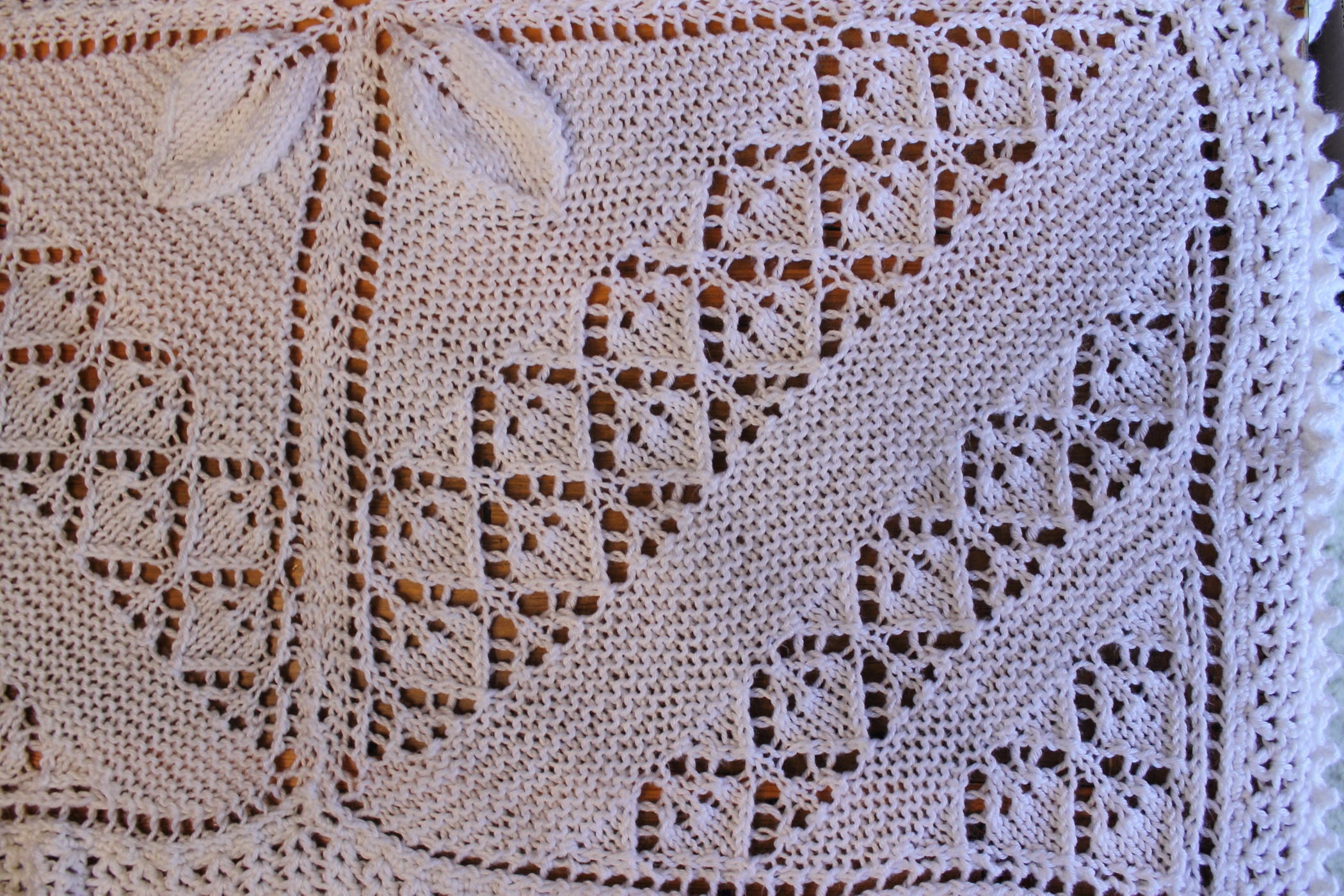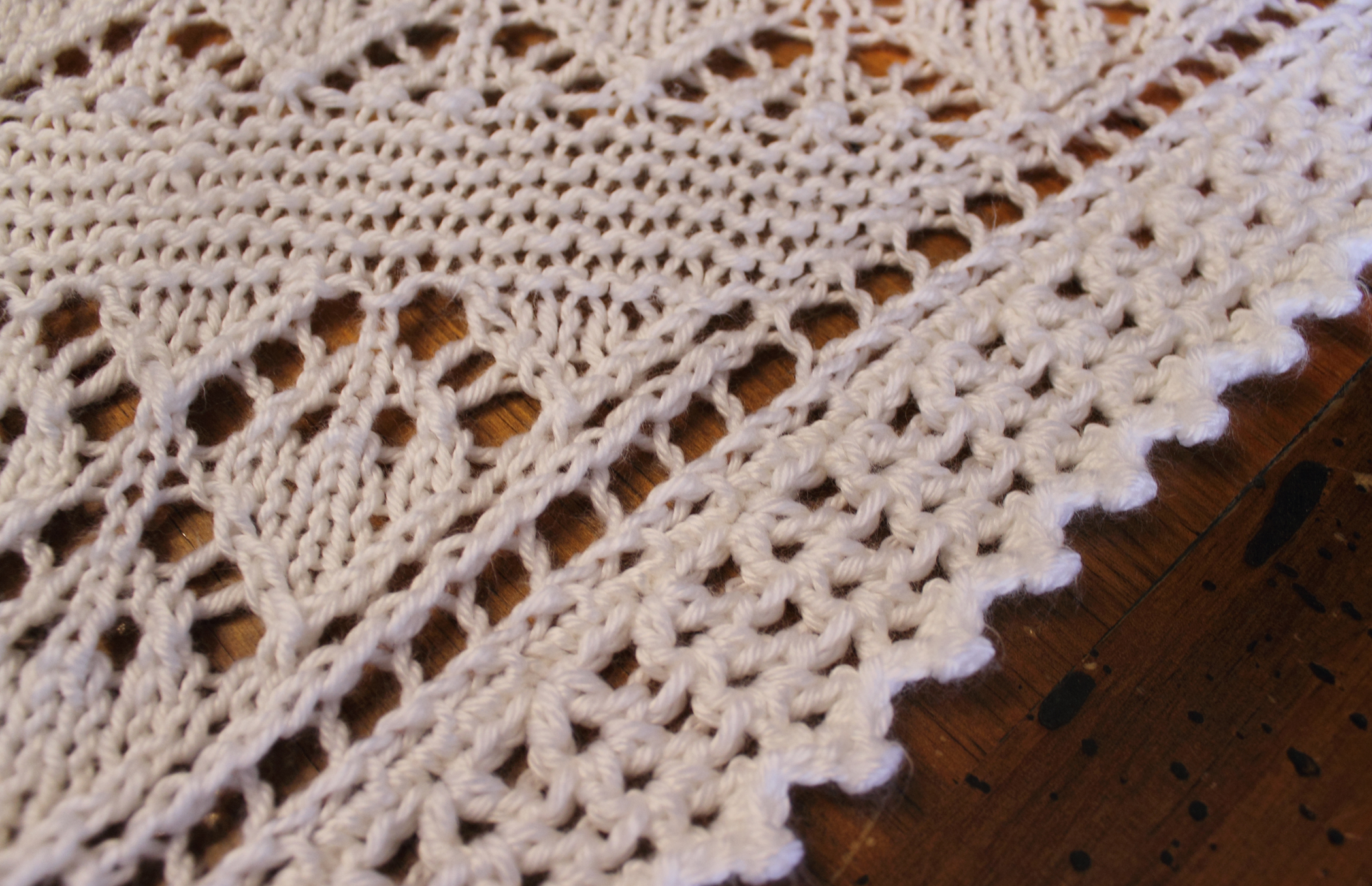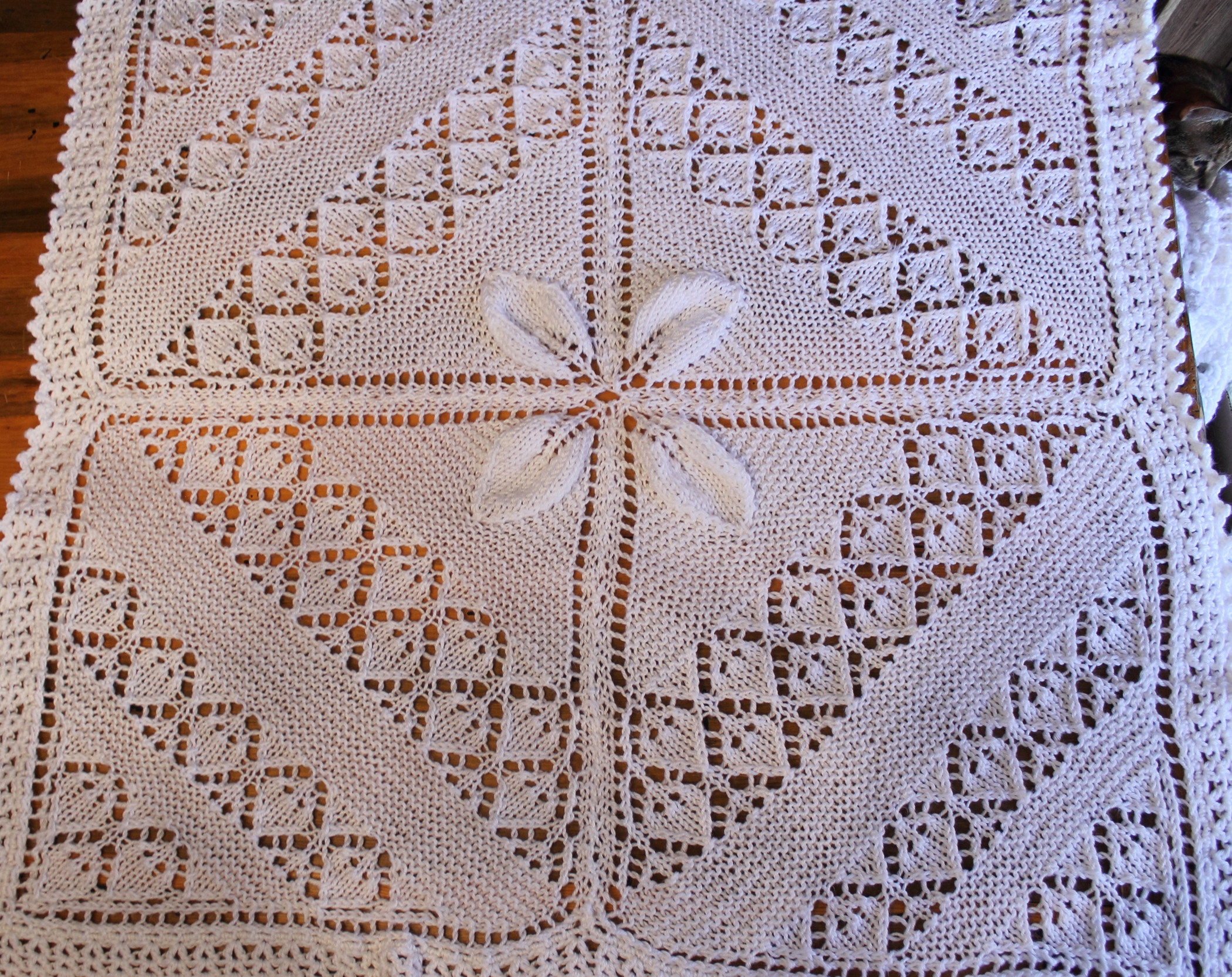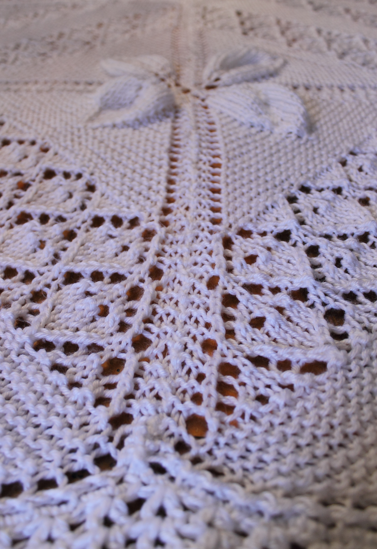 The pattern is a 16-row repeat. As such, it was too long for me to memorize. Also, it’s worked from the bottom up – so it gets wider, the further along you go. You work the two halves separately and then sew them together.